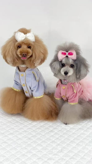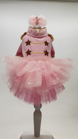 ビロード調のトップスに星とゴールドフリルをあしらい、マーチング風のアクセントを。