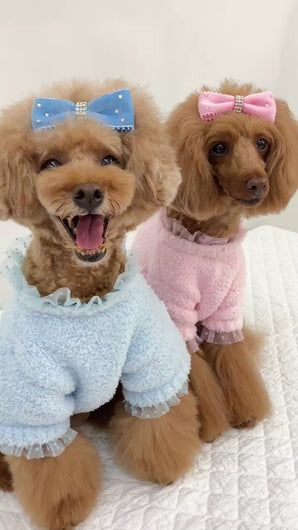 ふんわりもこもこ素材に、チュールや刺繍でガーリーな可愛さをプラス。