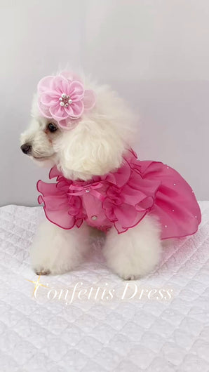 立体感のあるプリーツドレープに光をまとい、まるでお菓子の国から舞い降りた小さな妖精のよう。