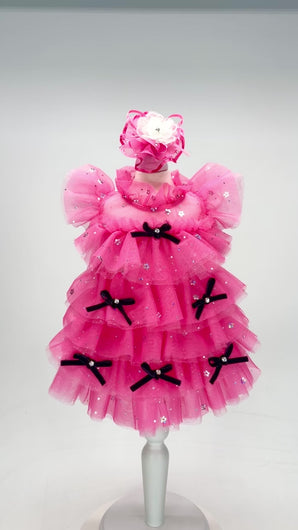 華やかなプリンセススタイルのグリッターが煌めくフリルドレス。
