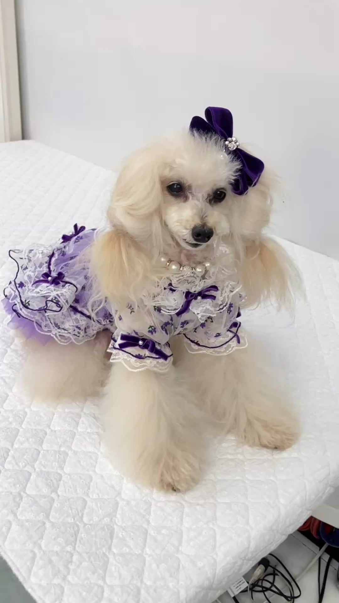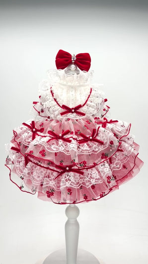 可憐な赤や淡いラベンダーベースに咲く花模様とパールの装飾が、幻想的な世界観を演出。リボンのバランスが上品で、写真映えも抜群の一着です。