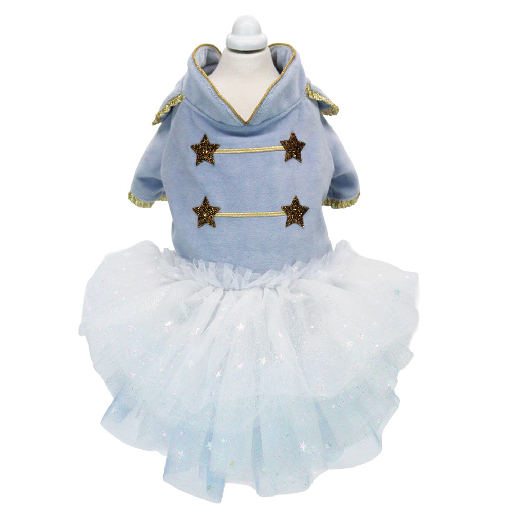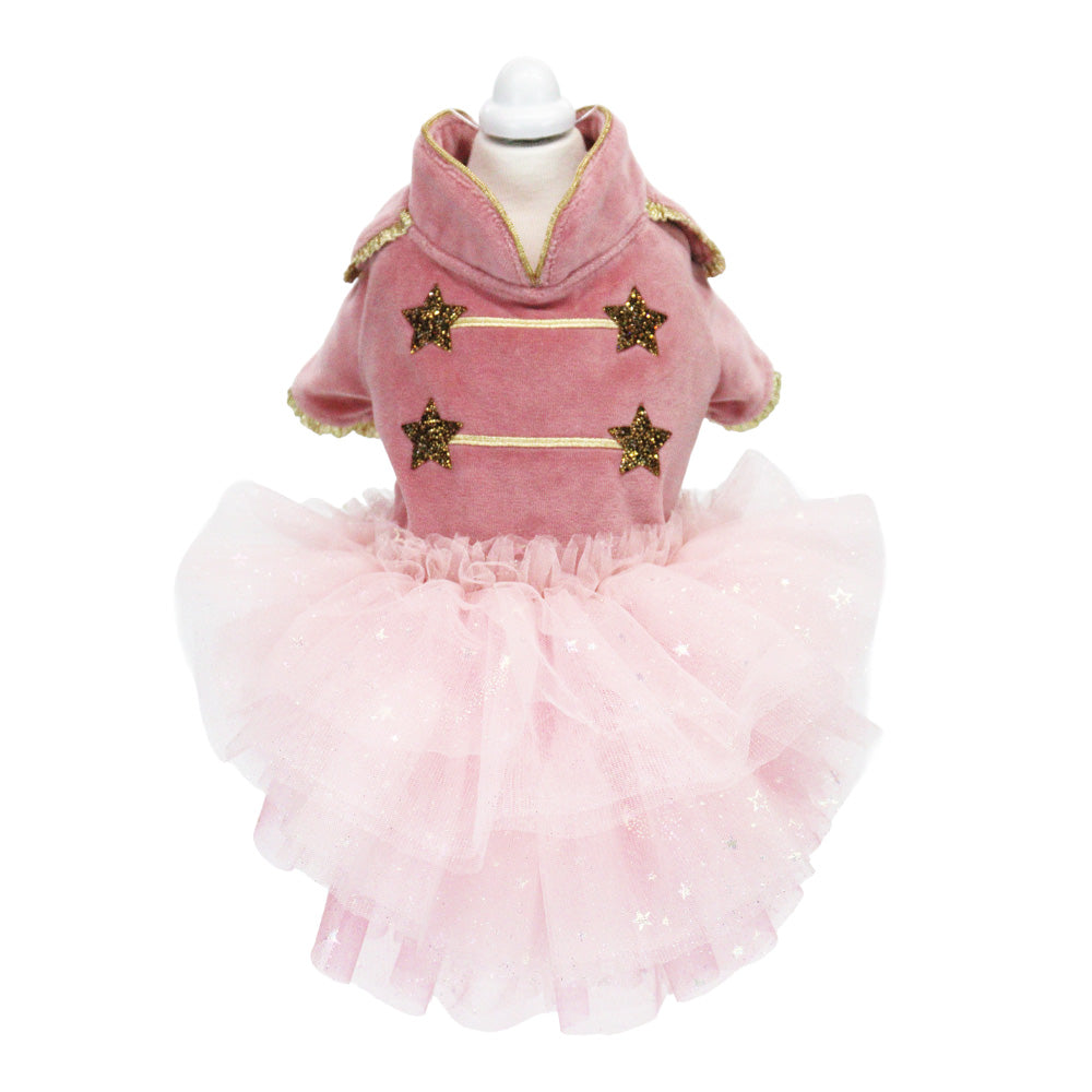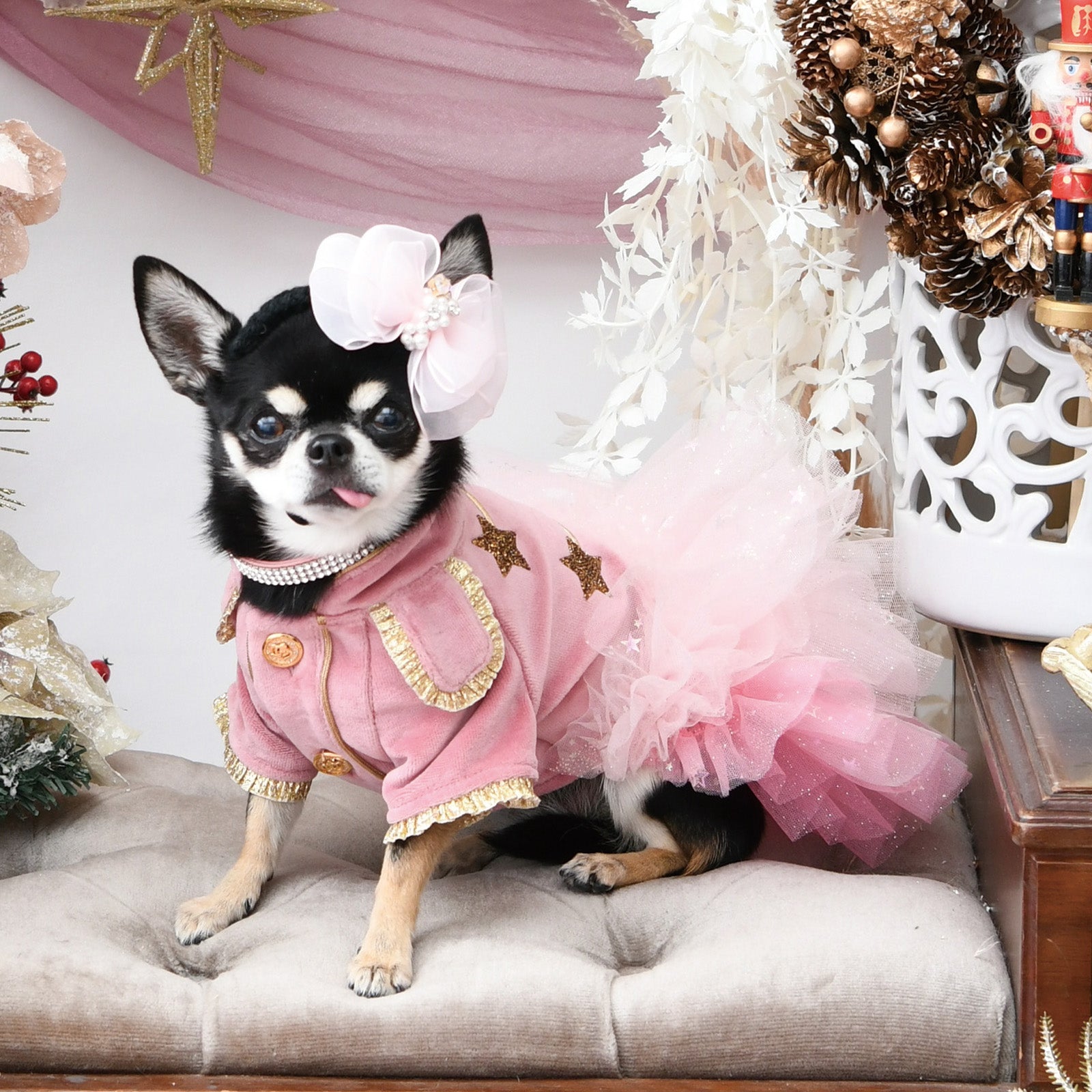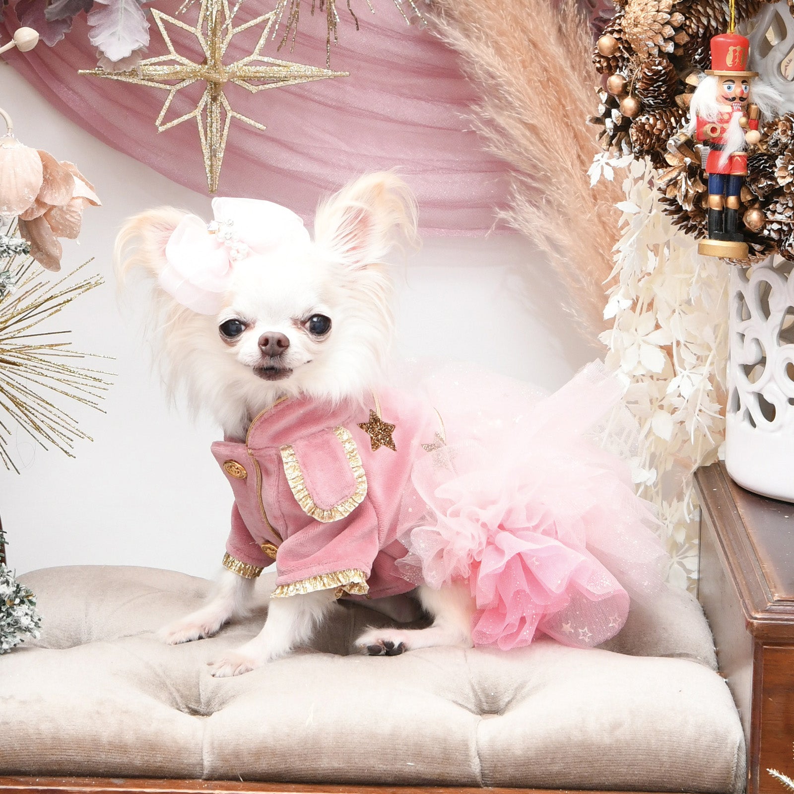 ビロード調のトップスに星とゴールドフリルをあしらい、マーチング風のアクセントを。