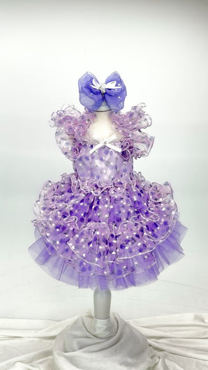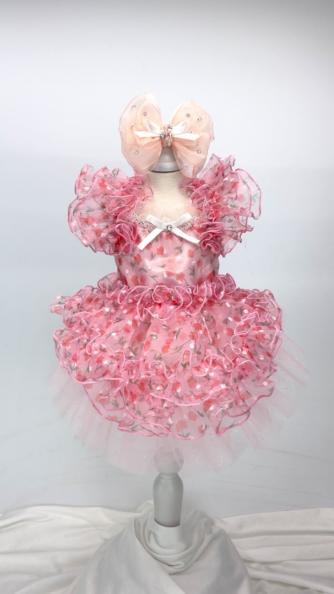 全体にあしらわれたフリルが動きに合わせて柔らかに揺れ、空気を纏うような立体感を演出。広がりのあるシルエットが可憐さを宿します。 -
