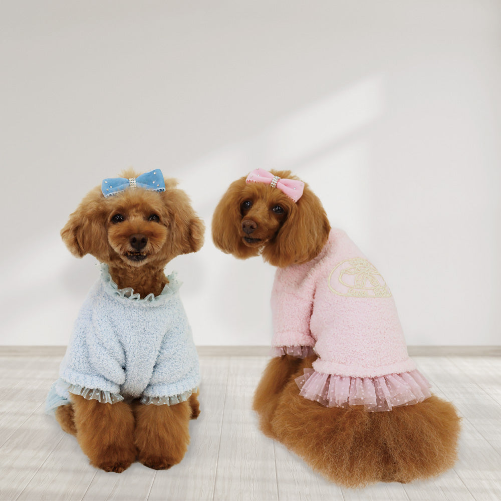 ふんわりもこもこ素材に、チュールや刺繍でガーリーな可愛さをプラス。