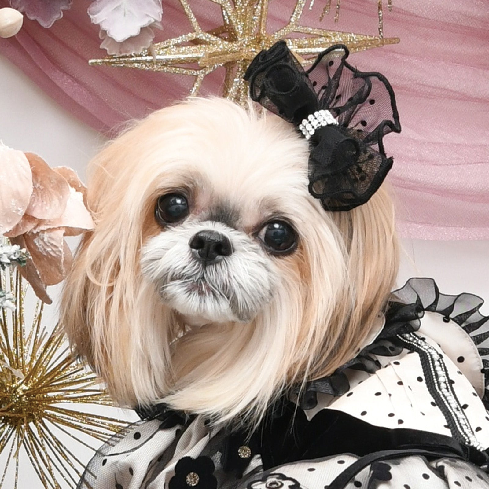 軽やかに揺れる、ドットチュールのエレガントリボン。