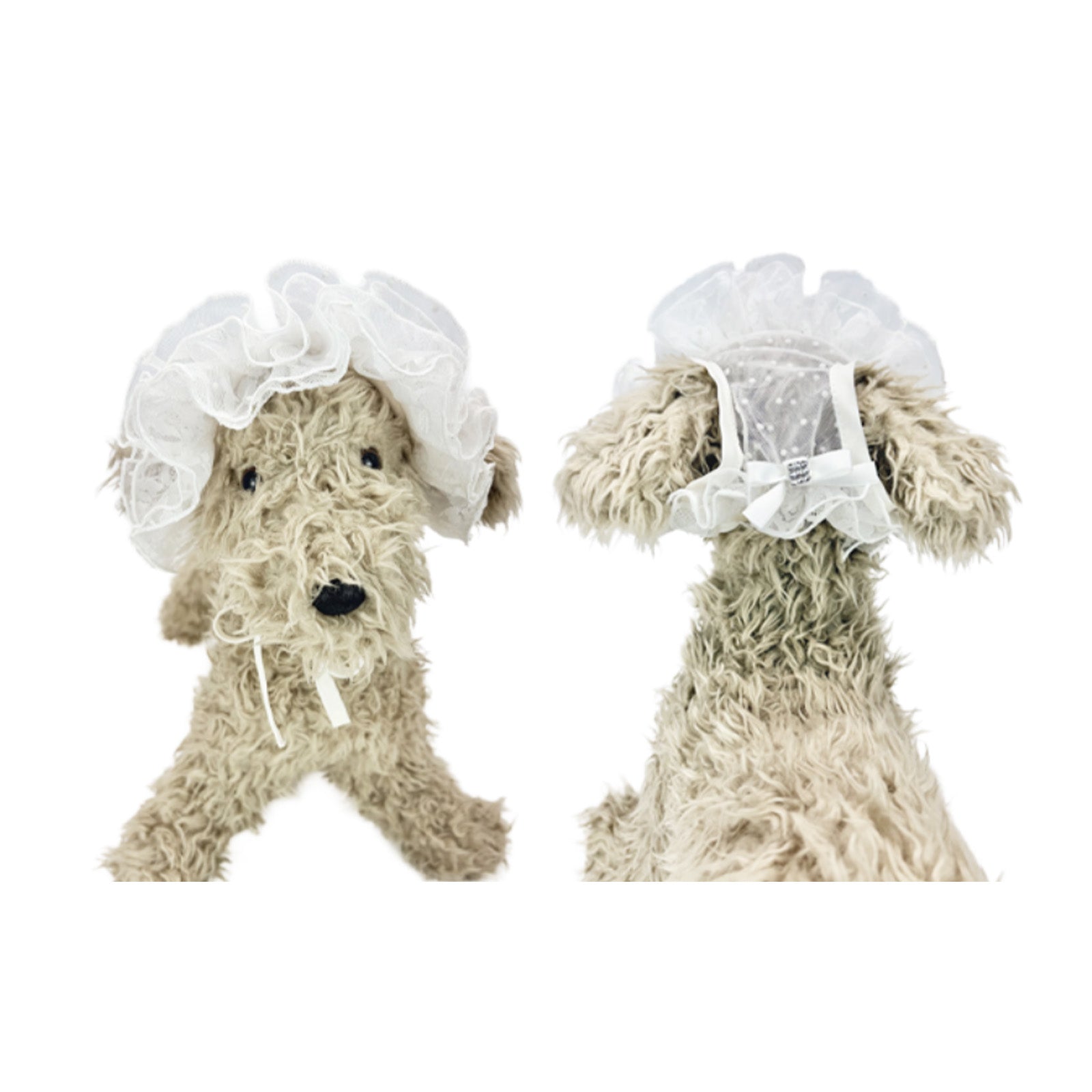 可憐なレース素材が、普段の装いも一気に華やいだ雰囲気に格上げしてくれるキャプリーヌ。紫外線や暑さ対策の実用性も兼ね備えながら、オシャレ度をアップしてくれるマストアイテム。お耳を通して、首元のストレッチリボンで調節してお使いください。