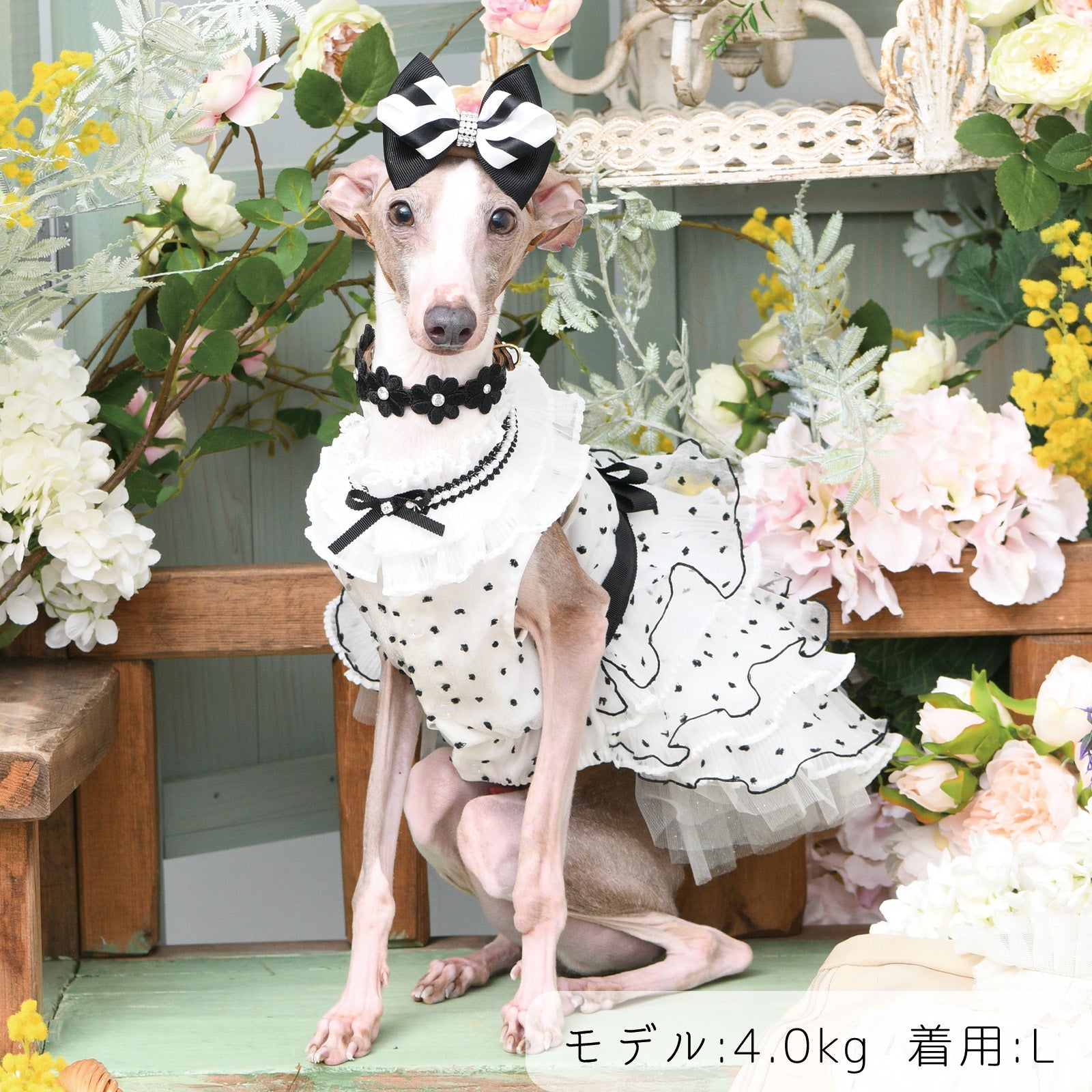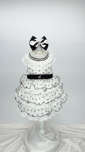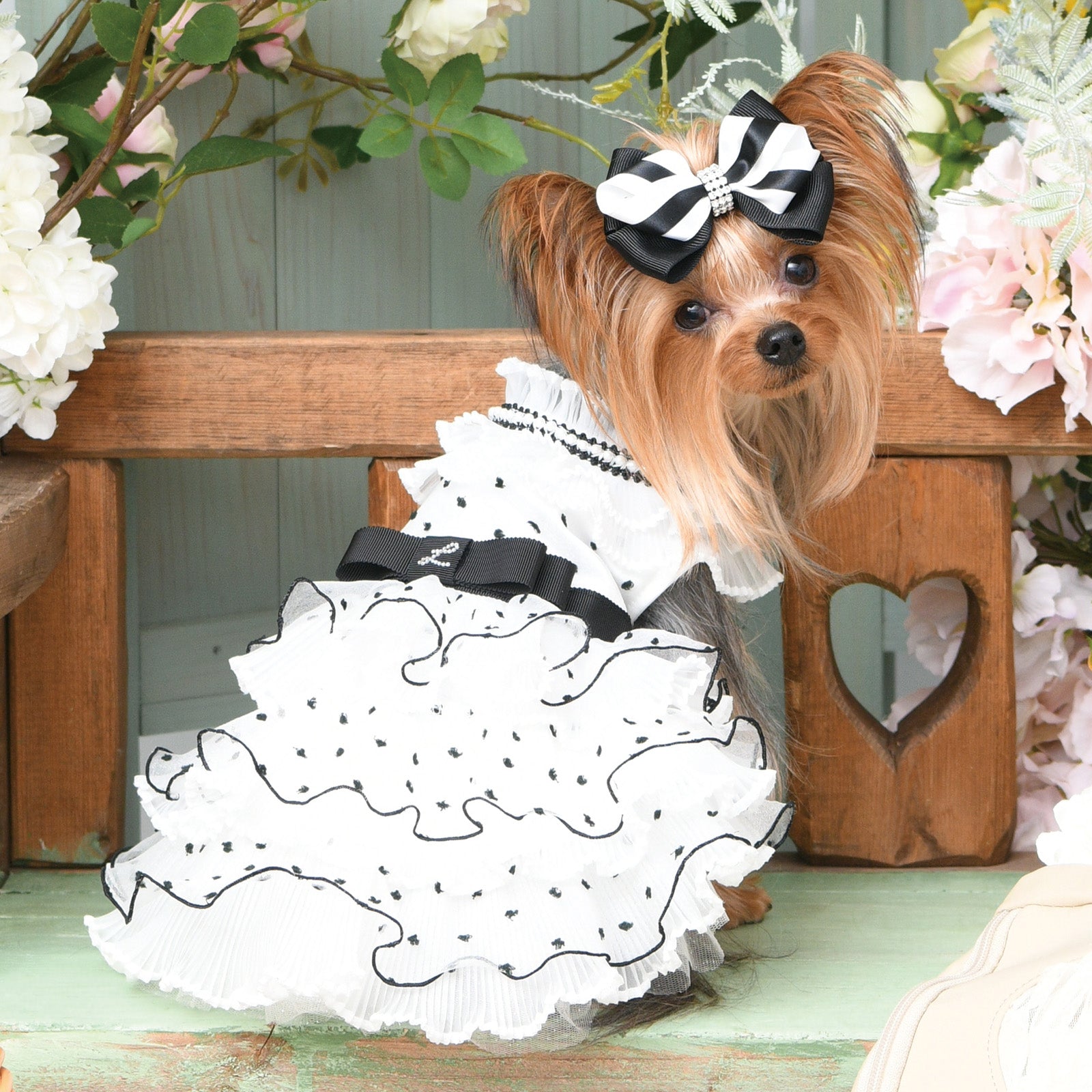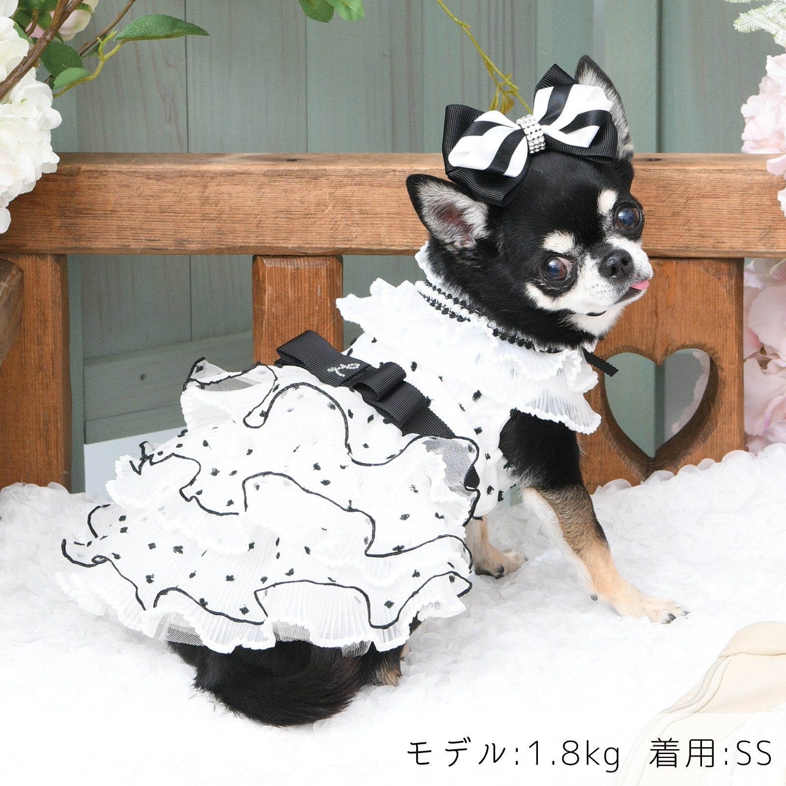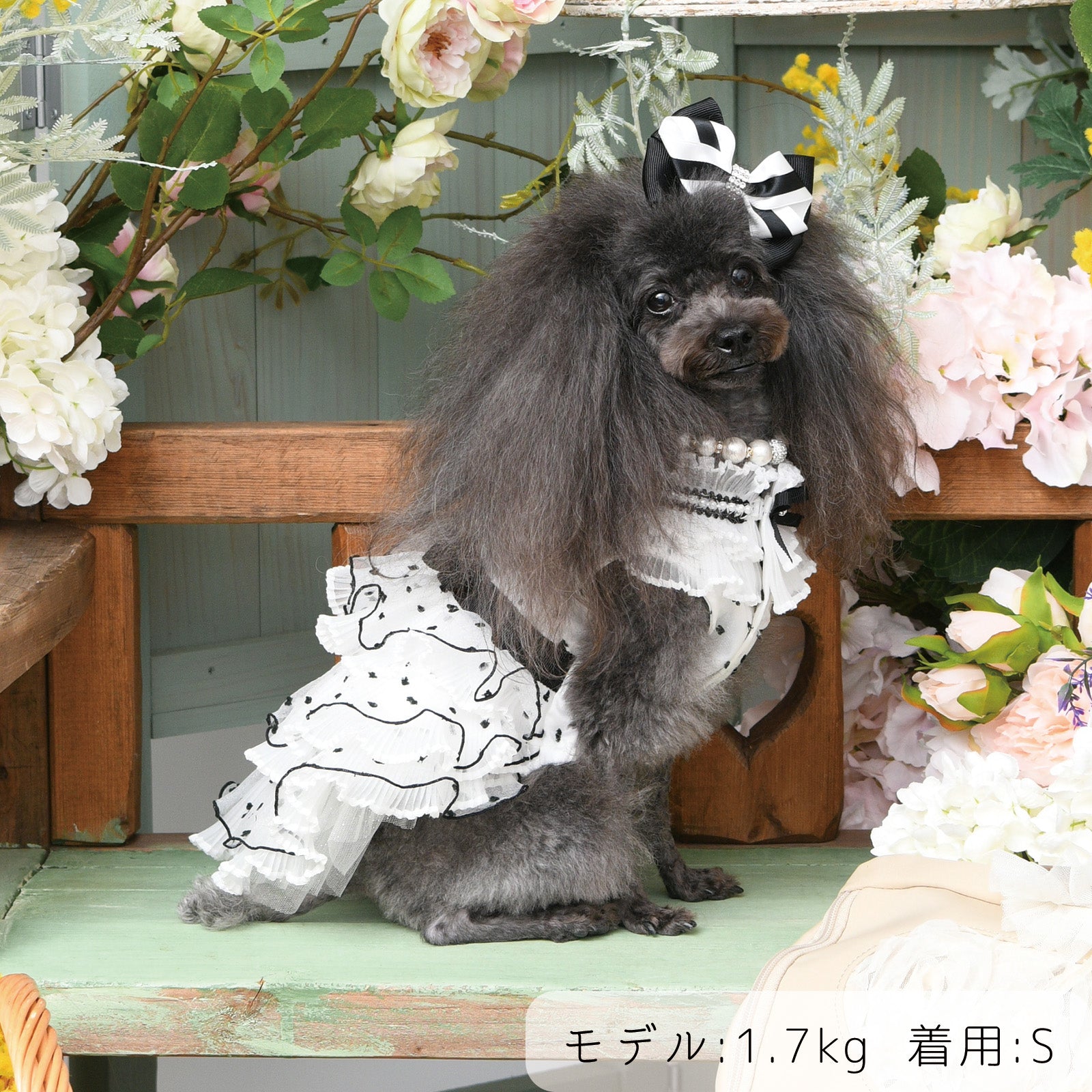 ホワイトにブラックを効かせた端正なコントラスト。静かな華やぎを宿しながら、凛とした存在感を放つモノトーンドレスです。